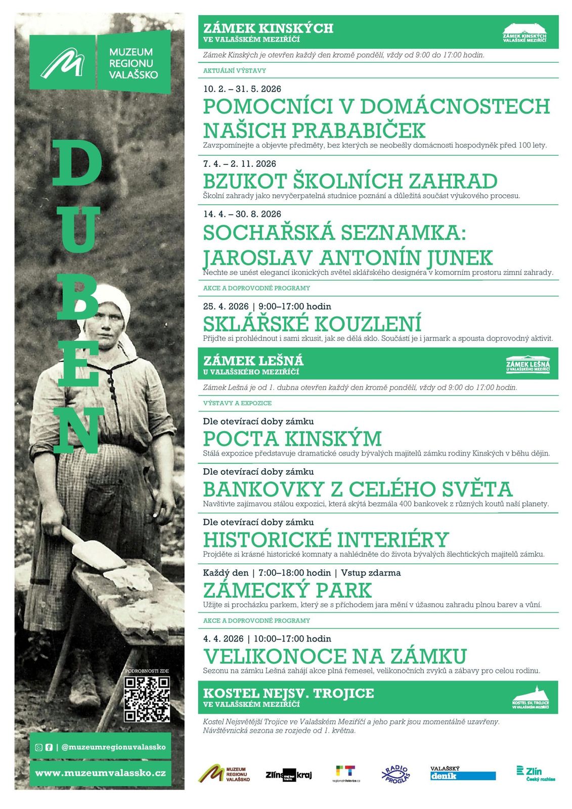Oblíbená akce věnovaná sklářskému řemeslu a tradici výroby skla na Valašsku proběhne v sobotu 25. dubna v zámku Kinských ve Valašském Meziříčí. Na programu jsou ukázky řemesel, tvůrčí dílny i sklářský jarmark. Chybět nebude živá hudba a bohaté občerstvení, včetně osmistupňového sklářského piva, vařeného právě pro tuto akci. Těšíme se na Vás!. Více na https://www.muzeumvalassko.cz/akce-a-vystavy/sklarske-kouzleni-4
